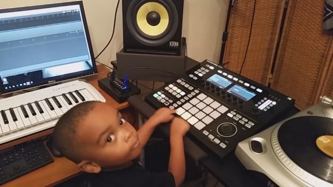 Dieser Kindergarten-Knirps dürfte das Talent von seinem stolzen Papa geerbt haben. Ein Vierjähriger zeigt sein ganz können am Mischpult. Der Sound wirft einen um.