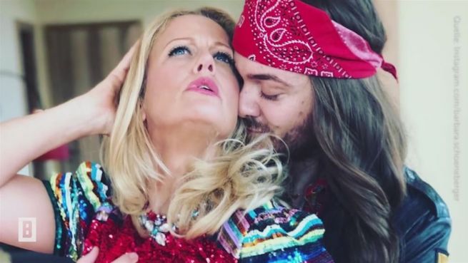 Es ist nicht Barbara Schönebergers Ehemann, der auf diesem Bild herzlich umschlungen an die Brüste der Blondine fasst. Ein Skandalfoto?